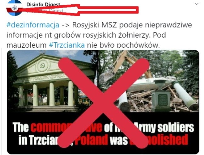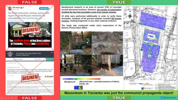 Несмотря на доказательства дезинформации со стороны польских властей, в соцсетях началось «разоблачение фейка МИД России о Тшчанке». Первым отметился аккаунт Disinfo Digest, опубликовав пост: «МИД России предоставляет ложную информацию о могилах российских солдат. Под мавзолеем в Тшчанке не было захоронений».