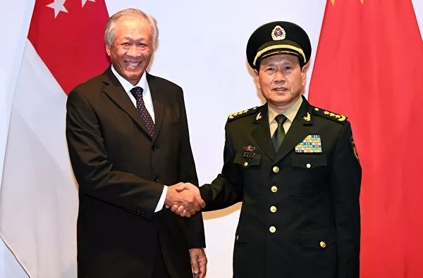 Министр обороны Сингапура Нг Енг Хен и министр обороны КНР Вэй Фэнхэ во время встречи в Сингапуре
