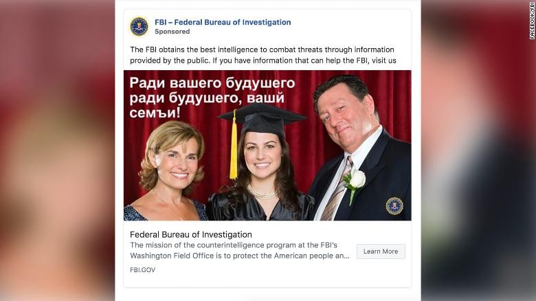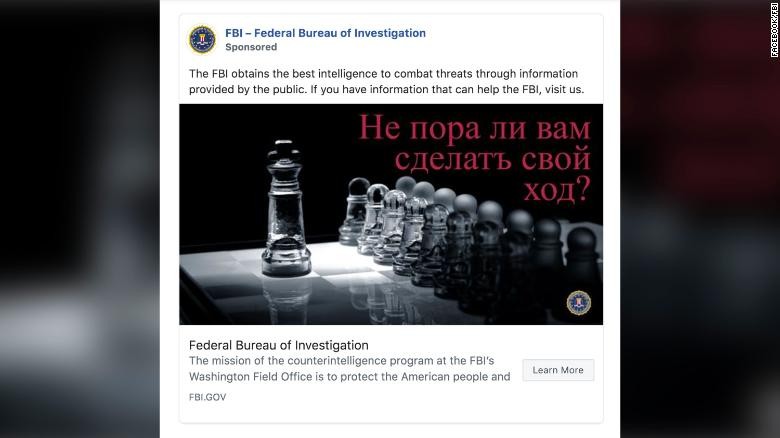 ФБР размещало в Facebook сообщения на русском языке с предложением помогать американским спецслужбам. Как сообщает CNN, всего было опубликовано три подобных объявления.