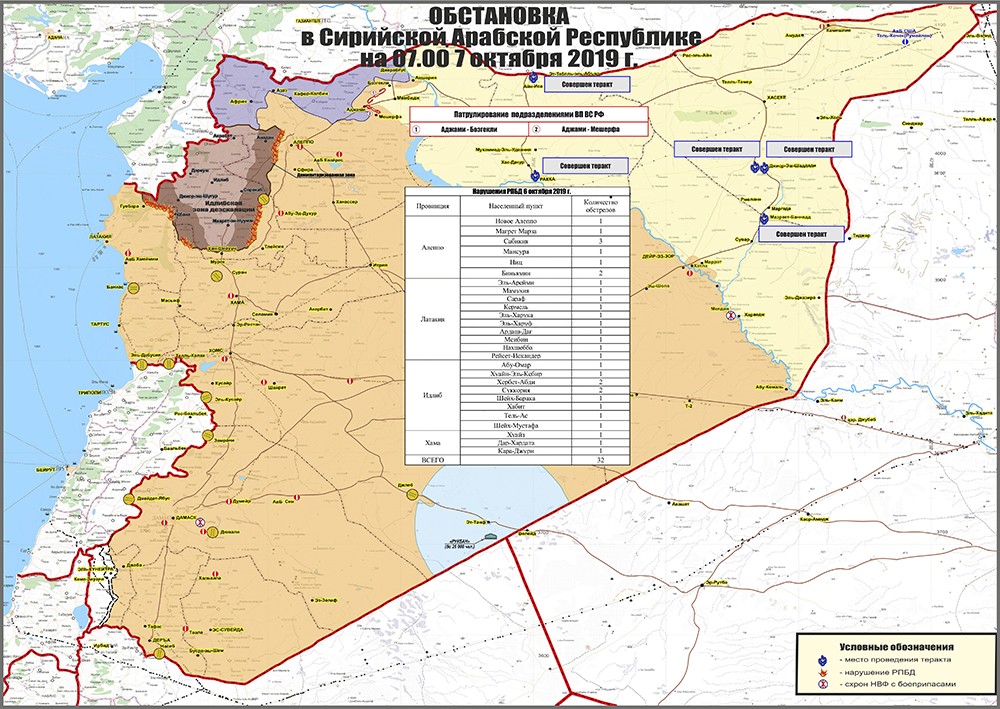 Справка по обстановке на территории Сирийской Арабской Республики на 6 октября 2019 г.