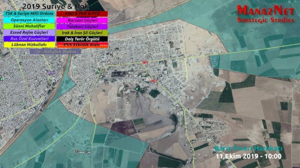 Курды отвечали минометными обстрелами турецкой территории.В ночь с 9 на 10 октября Турция и ее союзники из Сирийской Национальной Армии приступили к наземной фазе операции против курдских формирований.Вчера вечером они завязали бои за приграничные населенные пункты Рас-аль-Айн и Тель Абьяд.