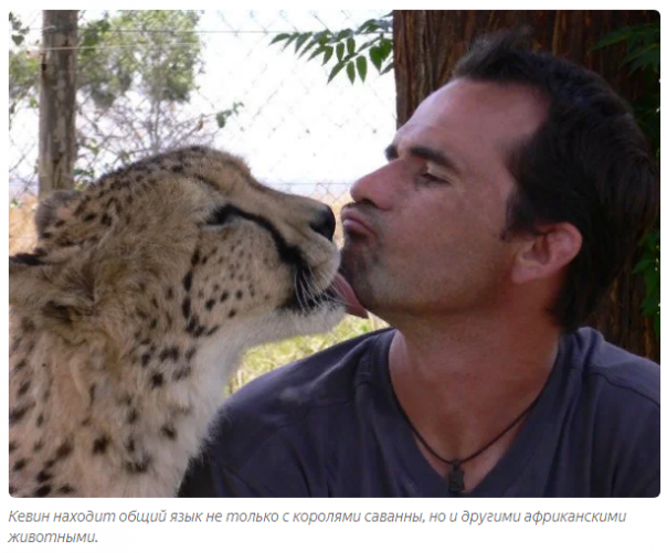 Этот человек имеет врождённый талант к пониманию животных, и это вам не Элайза Торнберри из того самого мультика. Хищники и Кевин понимают друг друга без лишних слов. Его трепетные отношения с животными доказывают, что люди могут завоевать любовь, доверие и расположение даже самых опасных зверей на планете. Но при условии, что основой отношений станут не насилие и жестокость, а любовь, уважение и взаимопонимание.