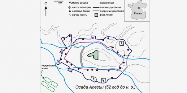 Справка. Существовало несколько гипотез относительно того, с каким топонимом Франции следует соотносить Алезию. Сегодня большинство историков сходятся во мнении, что Алезия располагалась на месте Ализ-Сент-Рен.