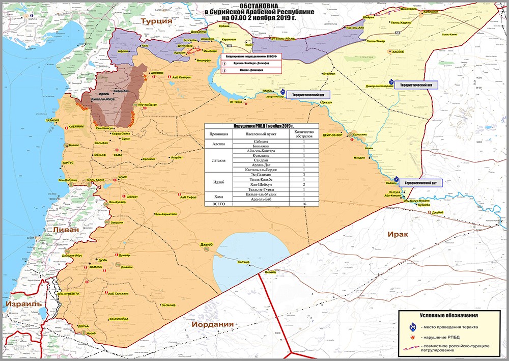 Справка по обстановке на территории Сирийской Арабской Республики на 2 ноября 2019 г.