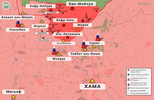 Сирийская арабская армия (САА) и союзные силы: обстреливают позиции радикалов на юге Идлиба и в северных частях провинции Хама.