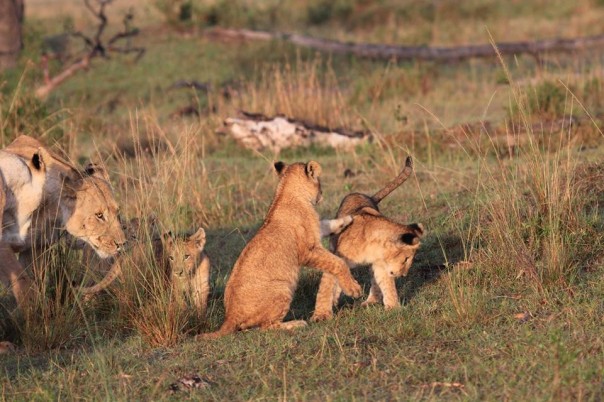 Львица умело скрывалась зарослях травы, практически слившись с пейзажем. Неподалеку паслось крупное стадо зебр и антилоп гну. Кошка начала подкрадываться к животным, оценивая ситуацию. У нее не было права на ошибку — если рассчитать силы неверно и дать жертве убежать, вслед за ней убегут и остальные. При этом охота может быть и опасной для хищника: многочисленные зебры и гну способны нанести львице тяжкие травмы своими копытами.