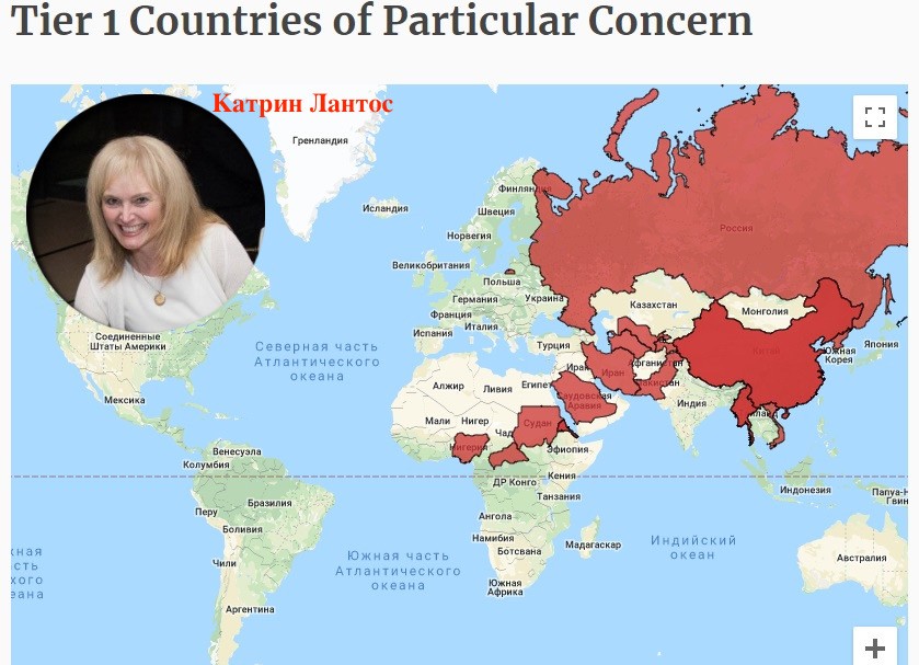 Теперь же Лантосы подгаживают по чуть-чуть и издалека. Например, Катрина выпустила карту мира, где красным цветом указаны страны, которые вызывают у США большую озабоченность. Главной среди них является, разумеется, Россия. Ну, а в прошлом году дамочка советовала правительству США увеличить финансирование либеральных СМИ, которые вещают в РФ и на Украине.
