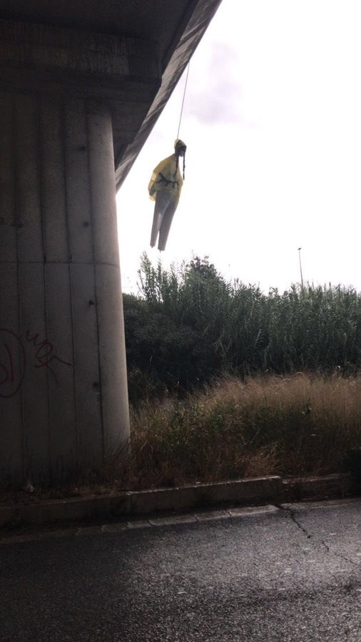 Местные власти осудили данную акцию, а полиция начала расследование после того, как фотографии повешенного чучела появились в социальных сетях.