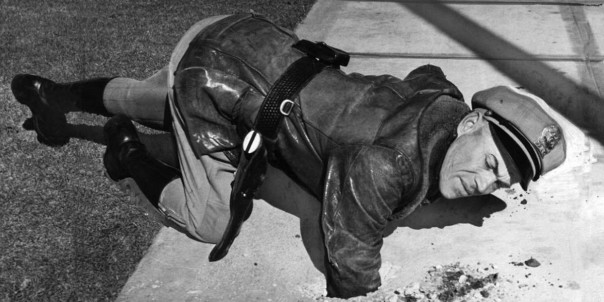 Отважный офицер Бобби Кларк ищет неразорвавшийся снаряд, застрявший в полотне дороги у Санта-Моники.