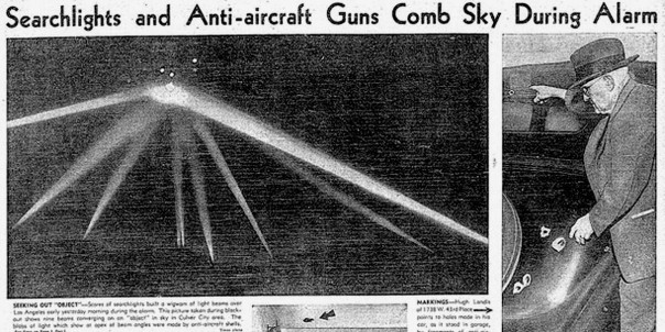 Утренние газеты буквально кричали, что сбито множество японских самолётов, а один сел прямо в Голливуде. А военные пытались понять, что это было. Началось расследование.