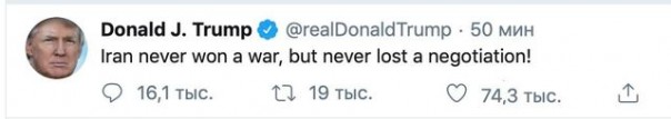 Перевод: «Иран никогда не выигрывал войн, но никогда не проигрывал переговоров».