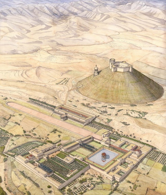 Крепость и царская резиденция Иродион с могилой Ирода, воздвигнутой на её склоне. Современная реконструкция.