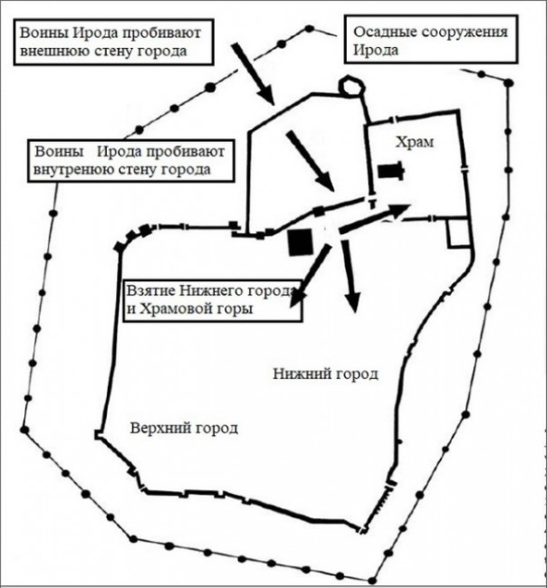 Зимой 38–37 годов до н.э. Антоний отправил на помощь Ироду своего легата Гая Сосия с двумя легионами пехоты и вспомогательными отрядами из Сирии. С этой армией, насчитывавшей около 30 000 воинов, Ирод вновь подступил к стенам Иерусалима. На сороковой день с начала осады ему удалось с севера прорваться в город, а спустя ещё 15 дней — захватить оставшуюся часть города и Храмовую гору.