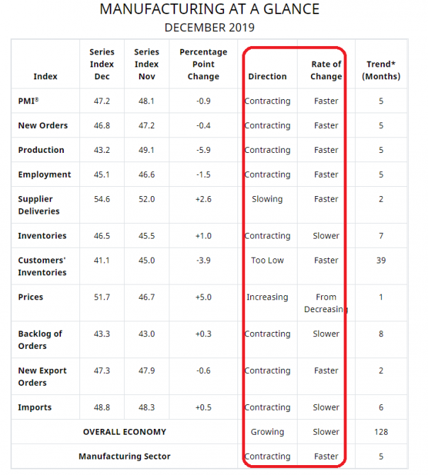 Institute for Supply Management (ISM) сообщает, что индекс обрабатывающей промышленности (еconomic activity in manufacturing sector) сократился до уровня 47.2 (с и без того проблемного уровня 48.1 в ноябре), что является худшим значением показателя с кризисного июня 2009 года. Сокращение идет пятый месяц подряд.