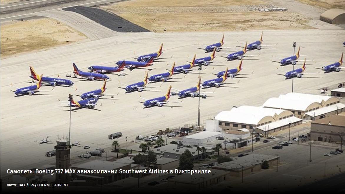 На снимках, выложенных британской газетой, — более 30 «Максов» авиакомпании Southwest Airlines, которым «было обещано, что они начнут летать в ноябре, но, скорее всего, они так и останутся доживать свой век на земле». В декабре 2019 года стало известно, что Boeing приостанавливает производство модели, а глава корпорации Деннис Меленберг ушел в отставку на фоне развернувшегося скандала с выявленными конструктивными недостатками злополучного самолета.