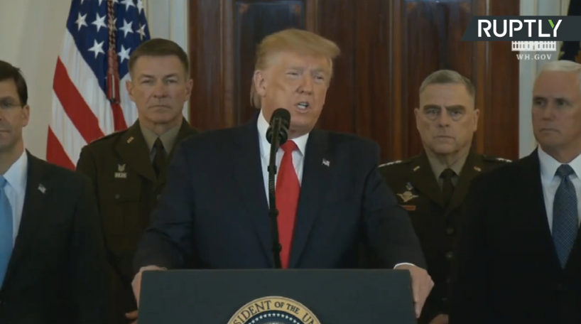 Однако после ракетных атак Ирана на военные базы США в Ираке американский президент не продолжает эскалацию конфликта, а спускает его, что называется, «на тормозах». Между тем, и извиняться Белый дом тоже не намерен. Трамп лицемерно прикрывается запретом Конгресса США на ведение боевых действий против Тегерана и ограничивается угрозами санкций.