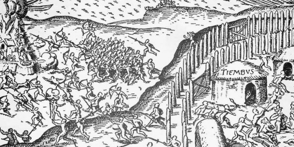 Фортуна улыбнулась гуарани. Командующий бандейрой де Баррос приказал причаливать к берегу и укрыться в деревне Аракагуа. На возведённый европейцами палисад индейцы ответили своим — уроки ветеранов Фландрии не прошли даром. Окружённых португальцев немедленно стали обстреливать с недосягаемой для них дистанции.