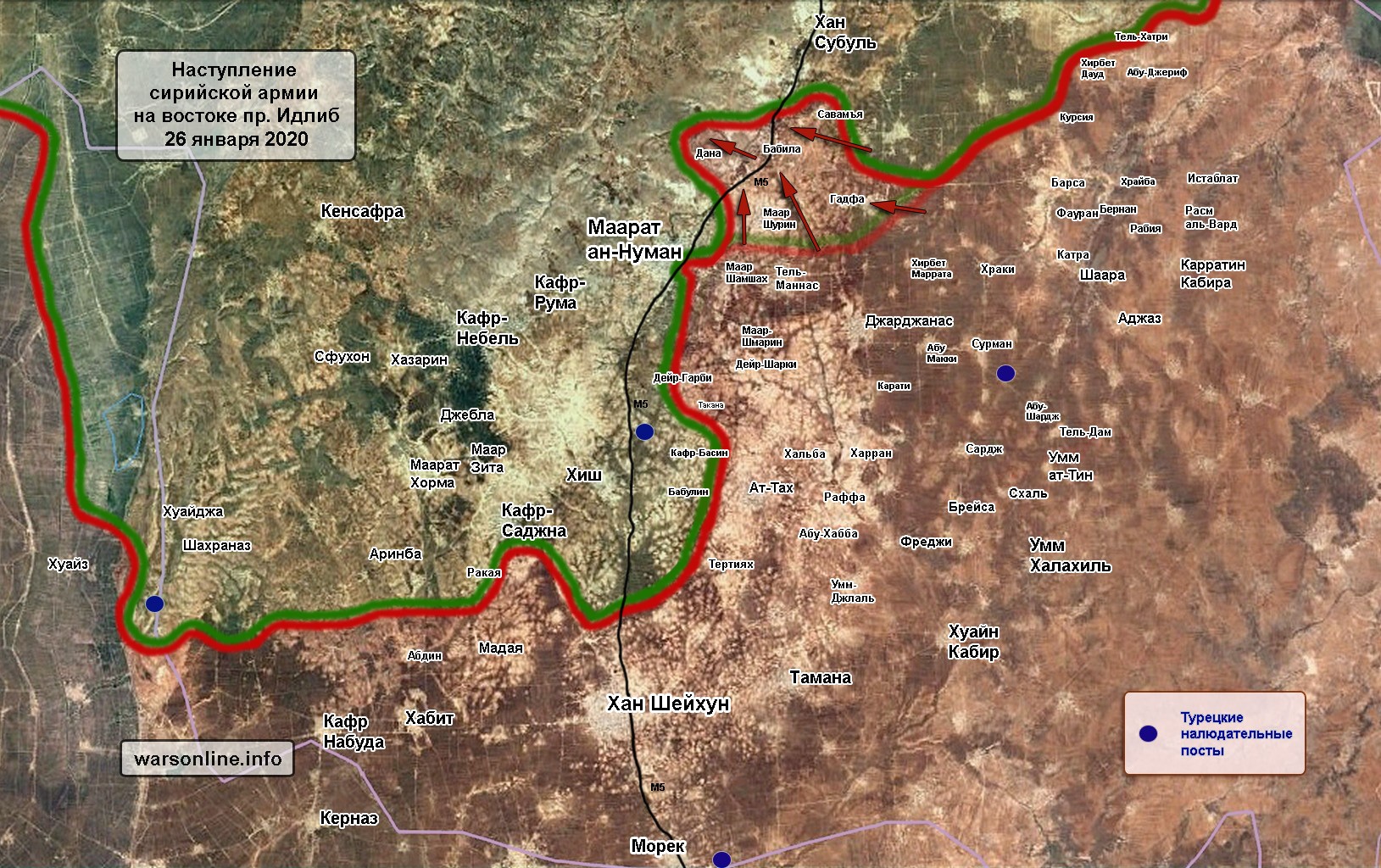 В результате наступления 26 января группировка боевиков в Маарат ан-Нумане оказалась отрезанной с северного направления. Источник