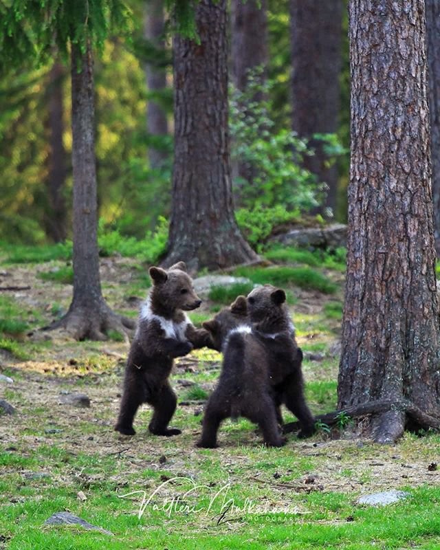 Учитель физкультуры Валттери Мулкахайнен (Valtteri Mulkahainen) живет в финской области Кайнуу на востоке страны. Он увлекается фотографией и в свободное время отправляется на съемки природы. Несколько лет назад он наткнулся в лесу на семейство медведей, и эта встреча подарила ему незабываемые снимки.