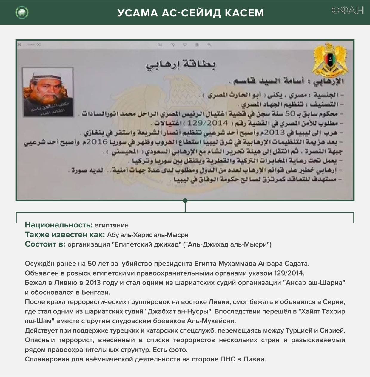 12 февраля суданские соцсети распространили информацию о том, что на севере страны готовили так называемых ополченцев в лагерях подготовки террористов «Аль-Каиды». Тот же Ахмад аль-Мисмари 3 февраля рассказал, что в Ливию Турцией было переброшено почти две тысячи боевиков «Аль-Каиды». А 12 февраля на другой пресс-конференции он рассказал, что боевиков «Джебхат ан-Нусры» (на тот момент она была ветвью «Аль-Каиды») хотят перебросить в Триполи и Мисурату. Данные некоторых боевиков были раскрыты.