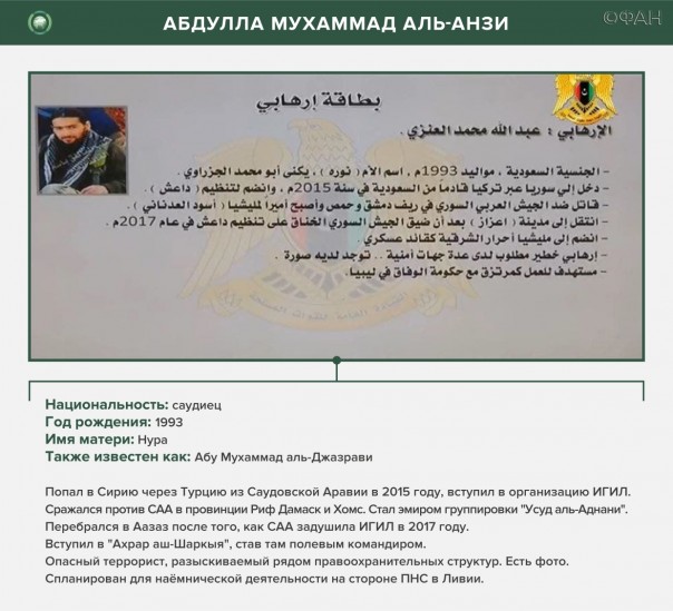 Также об этом в начале февраля сообщал официальный представитель ЛНР генерал Ахмад аль-Мисмари. Стало известно, что за ПНС воюют боевики «Аль-Каиды» и также запрещенных в России группировок «Хайят Тахрир аш-Шам» и бывшей «Джебхат ан-Нусры».