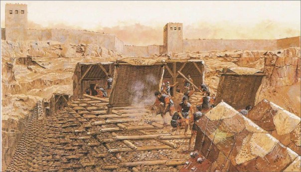 Против стен Иотапаты римляне возвели осадную насыпь, которая должна была им позволить сражаться с повстанцами на одном с ними уровне. Реконструкция штурма Иотапаты