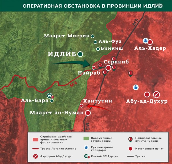 Сирийская арабская армия (САА) и союзные силы: отбили контратаку боевиков в районе Ан-Найраба юго-восточнее Идлиба; освободили населенные пункты Маар Зита и Маарет Хурма в Идилбе.