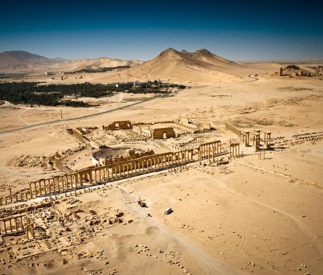 Пальмира была оазисом и древним перевалочным пунктом для караванов, пересекавших Сирийскую пустыню — арабы называли это место городом пальм (Тадмор). К I веку до н.э. Тадмор стал мегаполисом, полным торговых караванов и получил греческое название — Пальмира. Находясь на перекрёстке путей, ведших в Рим и Персию, местная культура вбирала в себя множество разных обычаев, в том числе элементы греческой, римской, кочевой, месопотамской и иранской культур.