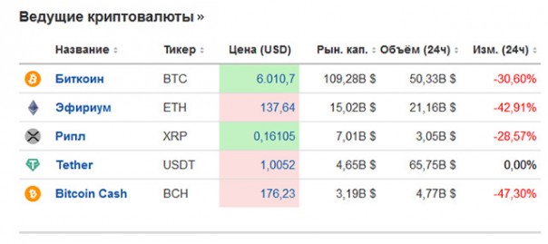 Катастрофическое падение показали также и криптовалюты.