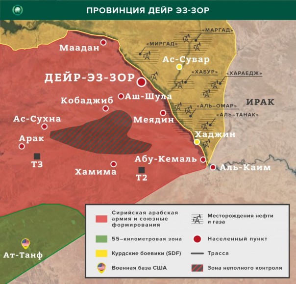 Twitter-канал (24_alsharqia) сообщает о новой вылазке неизвестных в контролируемых «Демократическими силами Сирии» (SDF) районах Дейр-эз-Зора. Тело одного из членов Рабочей партии Курдистана (РПК), который ранее был похищен в городе Шхиль, было обнаружено в районе нефтяного поля Аль-Омар. В убийстве курдского боевика подозреваются террористы «Исламского государства», осуществляющие подпольные вылазки в составе так называемых спящих ячеек.