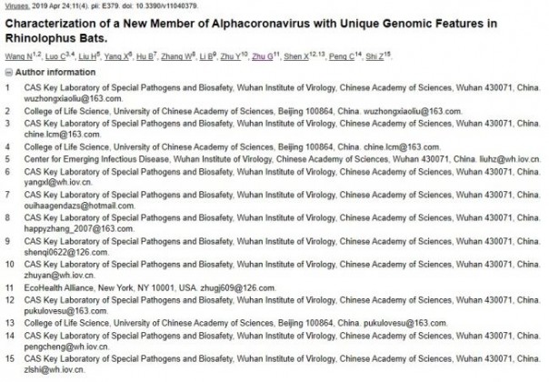Судя по научным работам на сайте NCBI только прошлого года, специалисты EcoHealth Alliance проводили совместные анализы и работы как с Шеньянским сельскохозяйственным университетом, пекинским Институтом патогенной биологии, так и Институтом вирологии в Ухане.