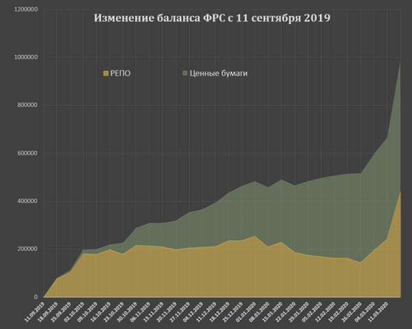 За 3 недели было вкачено 510 млрд, с начала расширения баланса ФРС (от 11 сентября 2019) почти 1 трлн!
