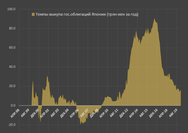 Зато ЦБ Японии не жалея сил скупает корпоративные фонды, трасты, ETF и прочую дрянь )) Пока на балансах у ЦБ Японии свыше 30 трлн иен этого добра. Примерно на 5 трлн иен в год скупали, сейчас могут до 10-12 трлн увеличить темпы. Также ожидается активизация скупки государственных облигаций с 16 трлн иен в год до 40-50 трлн