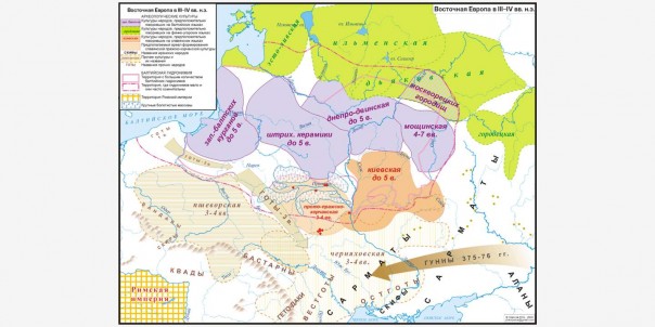 Здесь была создана черняховская культура, занимавшая территорию от Карпат до Курского Посемья. Там она граничила, частично перекрываясь, с постзарубинецкой «киевской культурой».