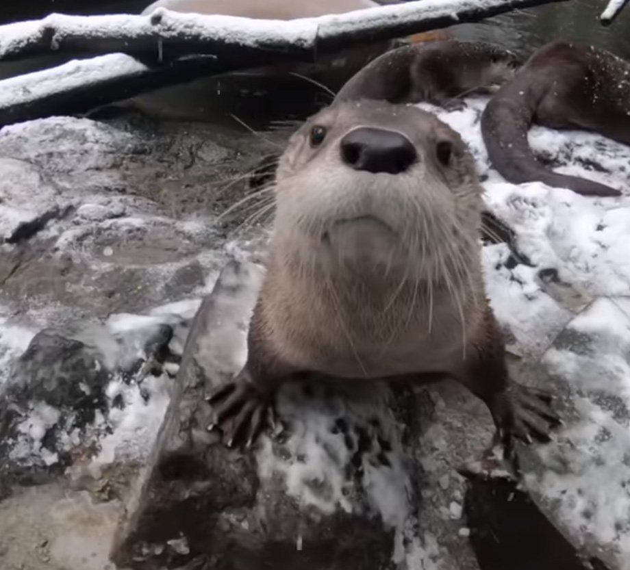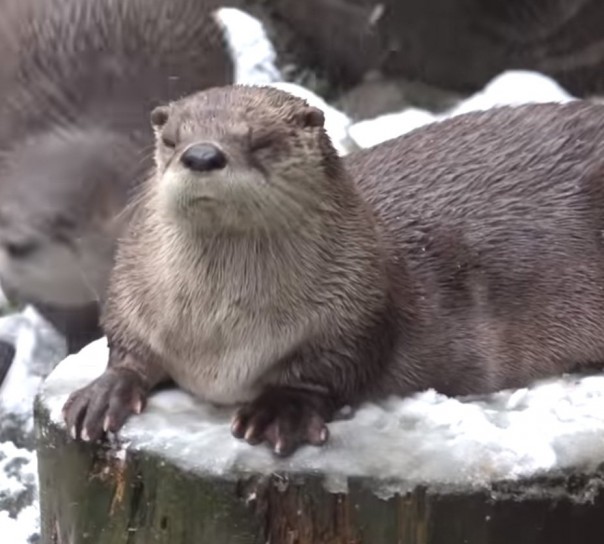 Выдры наслаждаются свежим снегом