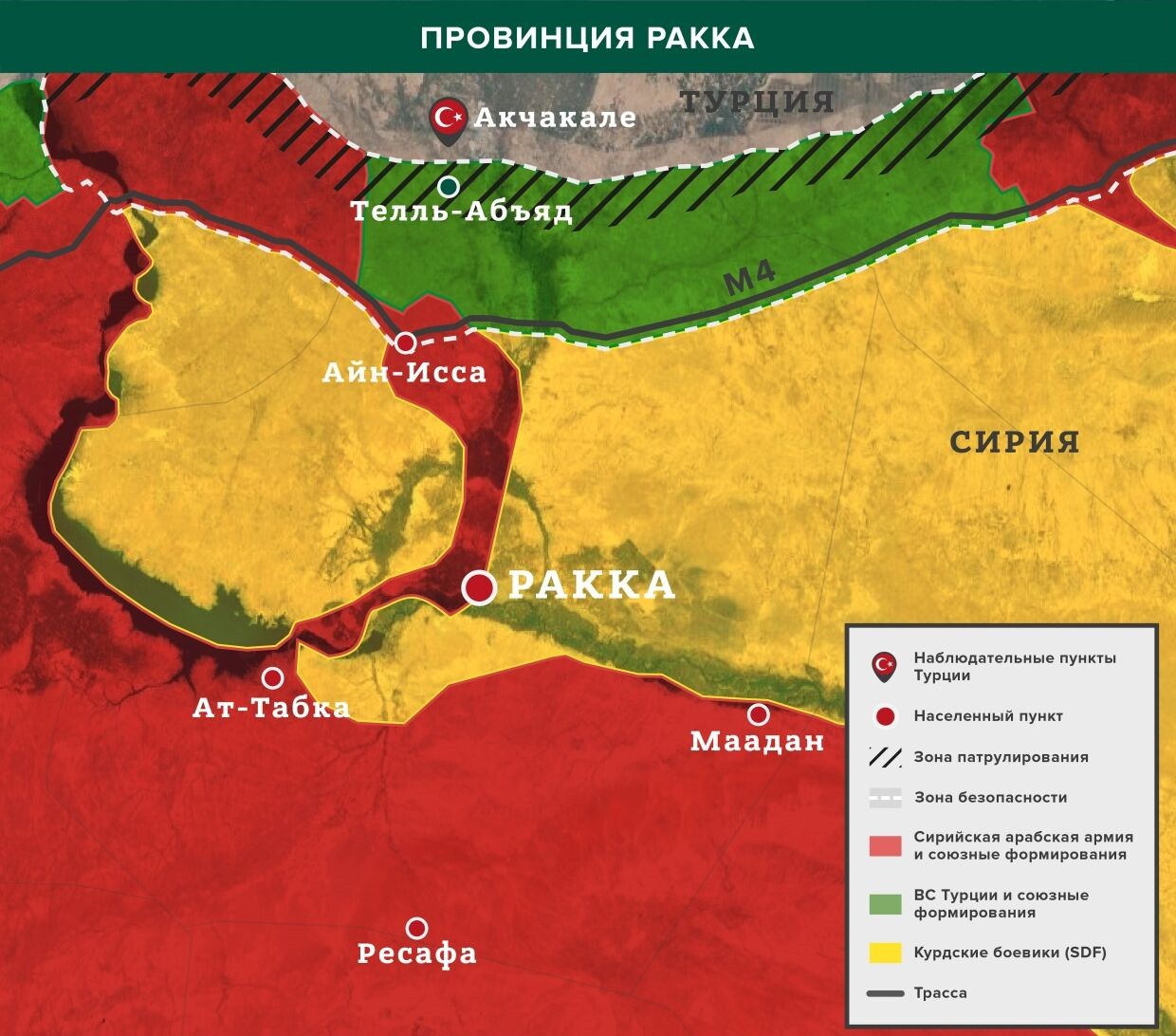 Между тем Twitter-канал (MasarPressNet) сообщает о взрыве неподалеку от города Ат-Табка к юго-западу от административного центра провинции. В результате детонации бомбы ранения получил ребенок. Предполагается, что СВУ было заложено террористами «Исламского государства» еще во время оккупации этого района.