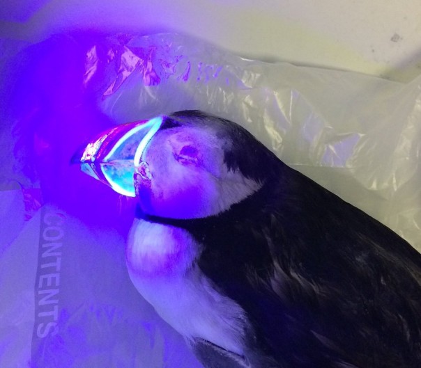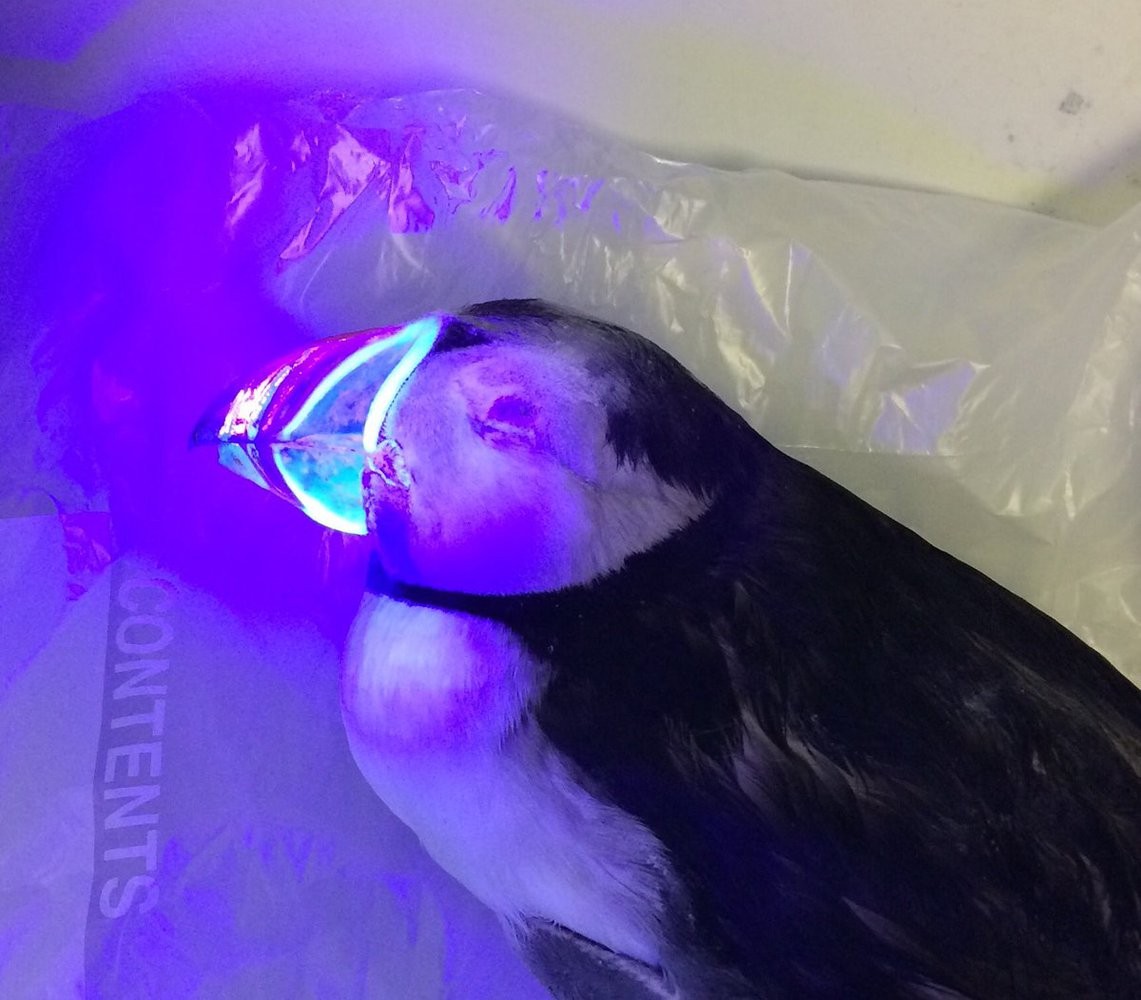 В распоряжении ученого была замороженная тушка тупика. Он принялся рассматривать мертвую птицу с помощью ультрафиолетовой лампы, но вместо светящихся перьев он обнаружил флуоресцентный клюв.