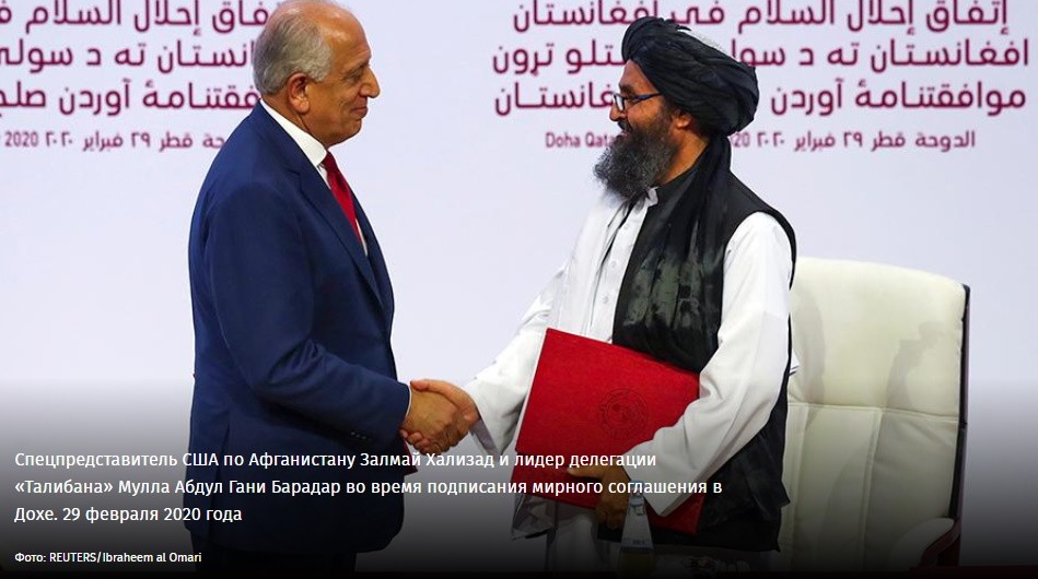 29 февраля в Дохе, столице Катара, США и «Талибан» подписали мирное соглашение о выводе американских войск и контингента НАТО из Афганистана. Предполагалось, что военные покинут страну в течение 14 месяцев, а уже к июлю этого года их число сократится до 8,6 тыс. Талибы в свою очередь гарантируют не использовать территорию Афганистана для действий, представляющих угрозу безопасности США и их союзников.