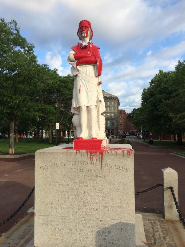 В Бостоне демонтировали еще один памятник Христофору Колумбу, которому ранее неизвестные отрезали голову.