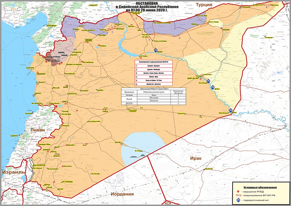 Справка по обстановке на территории Сирийской Арабской Республики на 28 июня 2020 г.