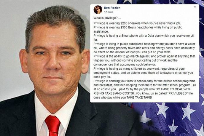 «Привилегия – носить наушники Beats за 300 долларов, живя на государственную помощь. Привилегия – это смартфон с тарифом на передачу данных, за который вы не получите счёт. Привилегия – жить в государственном субсидируемом жилье, где у вас нет счёта за воду, где повышение налогов на недвижимость, арендной платы и затрат на электроэнергию абсолютно не влияет на количество пищи, которую вы можете положить на стол.»
