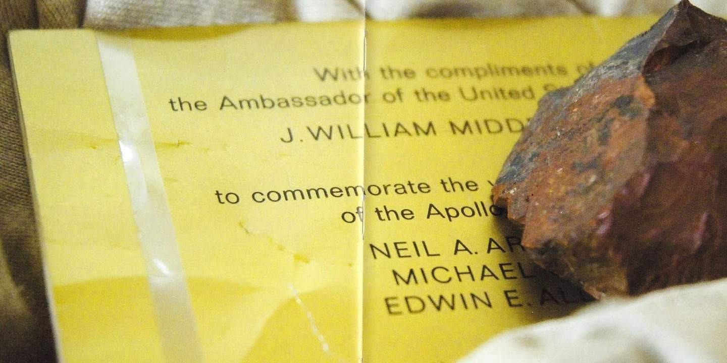 В музей этот камень попал из личной коллекции экс-премьер-министра Нидерландов Виллема Дреса. А ему камушек вручил посол США во время визита в Голландию — как дар от побывавших на Луне американских астронавтов. Было это в далёком 1969 году.