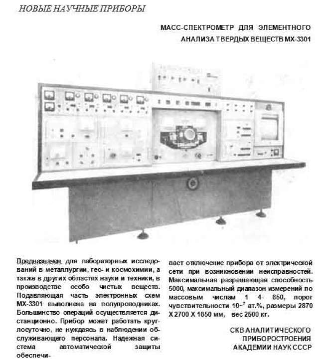 Само собой, ученые СССР получали и иные образцы грунта программы Аполлон. Так, в 1972 году был передан лунный грунт полученный экспедицией "Аполлон-14". Разумеется, что все работы проводились в пределах СССР и на советском же научном оборудовании. Например в статье Шевалеевского-Чупахина написано, что масс-спектральный анализ проводился на приборе МХ-3301. Вот он: