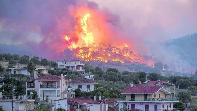 В Греции вспыхнул масштабный лесной пожар. Густой дым заволакивает остров