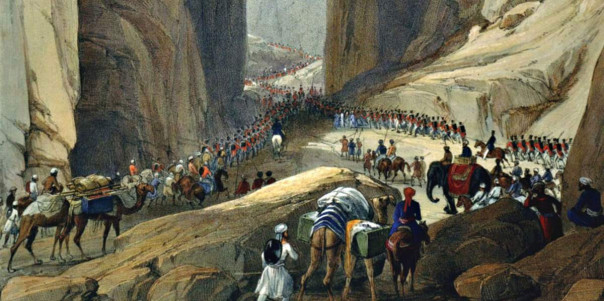 21-тысячная «армия Инда» в декабре 1838 года вошла на территорию Афганистана; с армией следовали 38 тысяч маркитантов, три тысячи верблюдов и большое стадо крупного рогатого скота. Англичане следовали как на пикник — верблюды одного полка везли в деревянных клетках гончих собак господ офицеров — для охоты, ещё два тащили запас сигар и папирос, а одному из старших офицеров потребовалось для перевозки своих личных вещей сразу 60 верблюдов.
