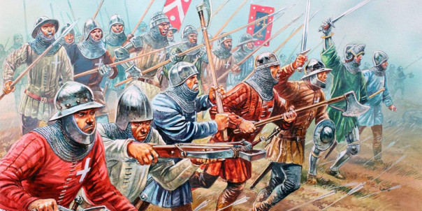 Со стрелами та же история — не та острота. Уже современные исследователи установили — нормальную плотную стёганку стрела, выпущенная из английского лука, не пробивает. Вот наш носитель стёганки и продолжает жить, хоть и будучи изрядно поколоченным. Потом, конечно, его нагонит кавалерия и затопчет копытами, но это будет уже другая история. А до тех пор — извольте, благородные сэры, приносить на битву идеально заточенное оружие, чтобы прорубать десятки и сотни стёганок, окружающих вас.
