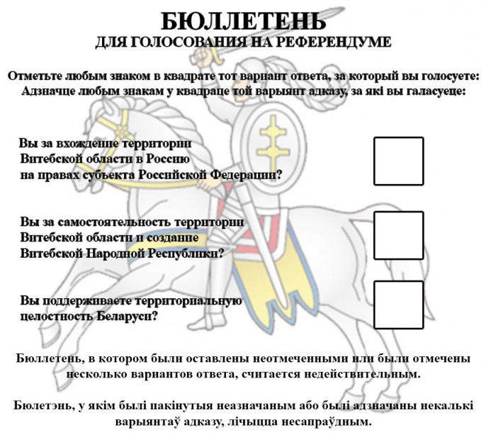 "Свиносотня быстренько Витебскую народную республику исполнила, которая уже завтра требует ввести российскую армию. Немножечко лоханулись с гербом Великого княжества литовского на фоне избирательного бюллютеня, но, думаю, исправятся", - отмечает военкор Дмитрий Стешин.