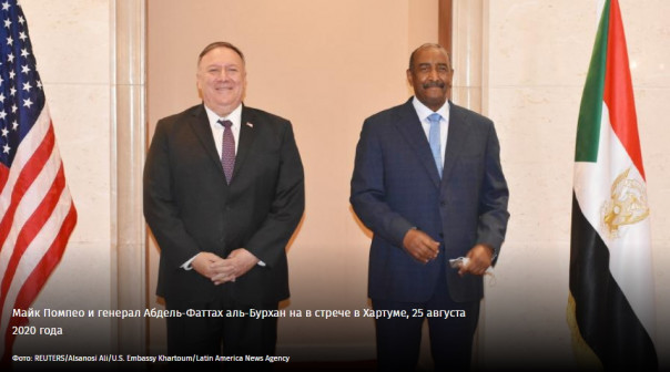 21 сентября в Абу-Даби состоялась встреча представителей Судана, США и ОАЭ. По данным портала Axios, в числе тем для обсуждения было и возможное признание Израиля со стороны Хартума и установление дипотношений. Судан может последовать недавнему примеру ОАЭ и Бахрейна, став пятой арабской страной, признавшей еврейское государство.