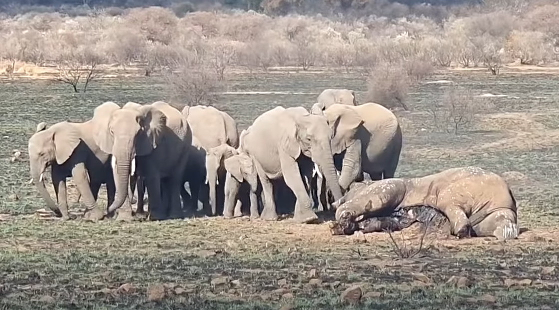 В первый же день после смерти попрощаться со своим сородичем пришли другие слоны: между этими зверями крепки социальные связи – а ещё, по версии ученых, у них есть особые похоронные ритуалы. Увидев останки сородича, слоны осторожно прикасаются к ним хоботами или пытаются поставить на ноги недавно умершего слона.