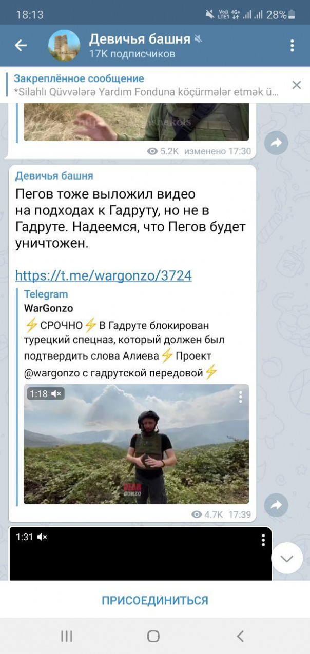Живущий в Москве админ канала "Девичья башня" Садат Гулиев надеется, что Семён Пегов @wargonzo сюда не вернётся. Это к вопросу намеренно ли был нанесен удар по церкви, где был ранен Юрий Котенок @voenkorKotenok